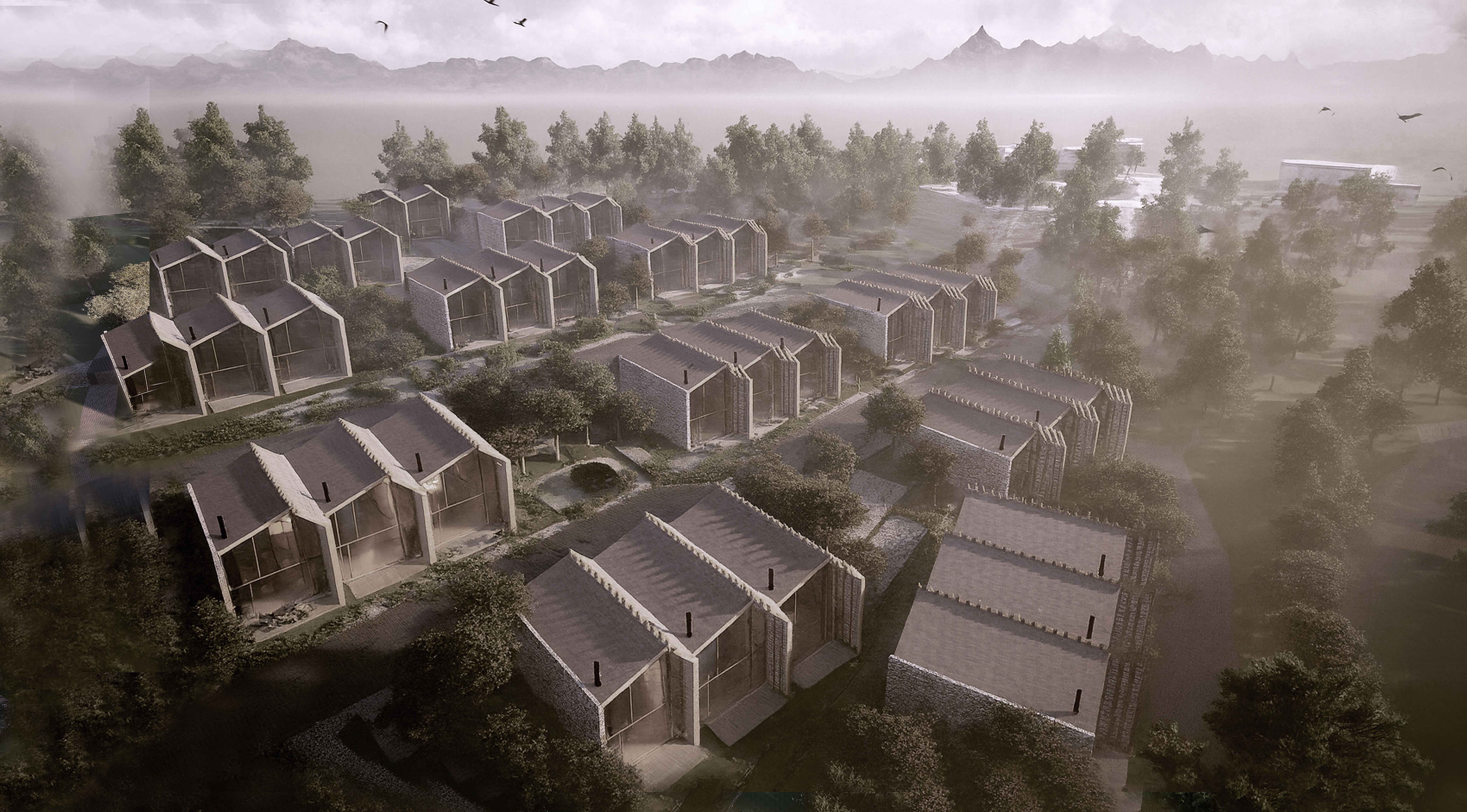 - Toplam 36 adet köy evi, her biri 2 katlı 85 m2 köy evi