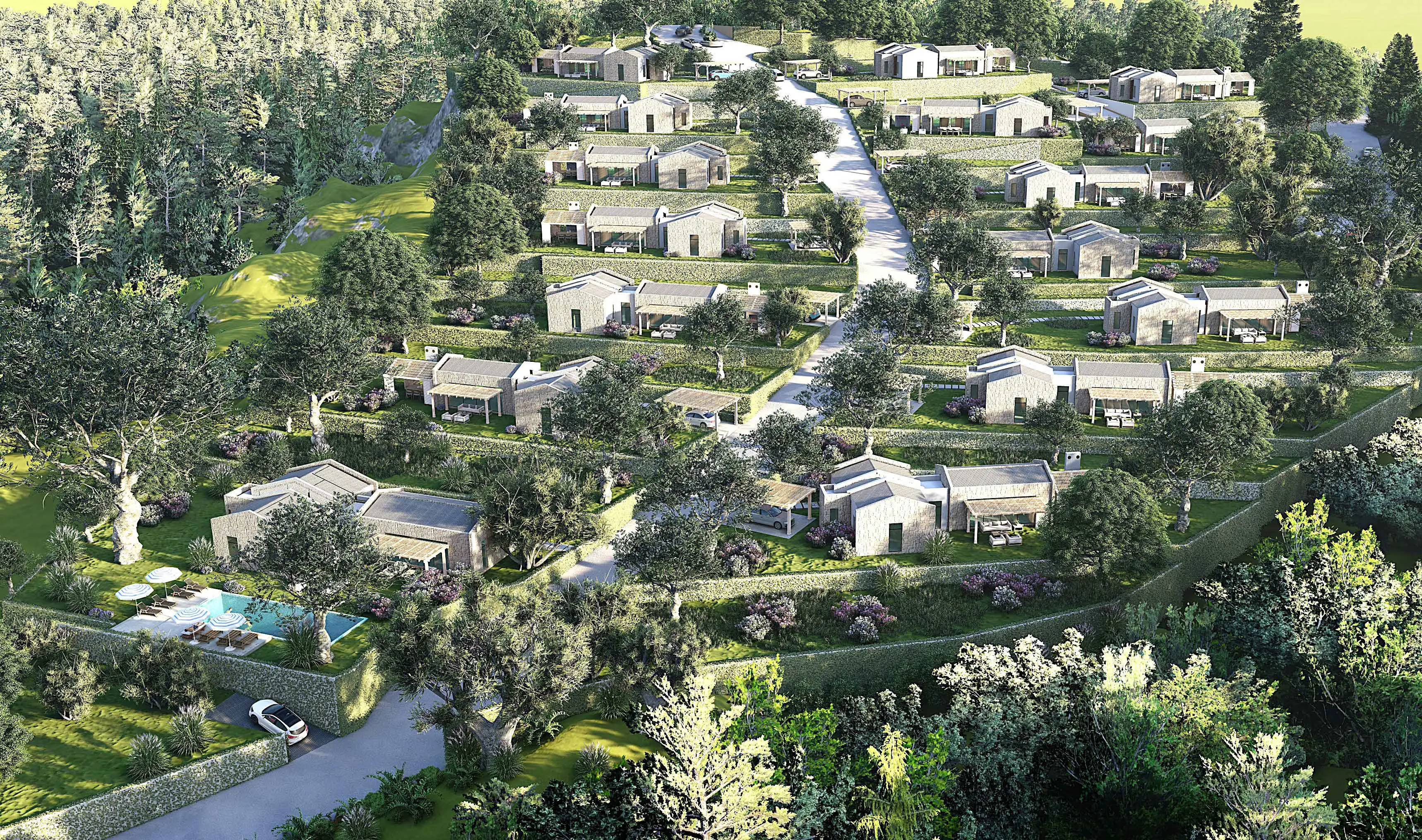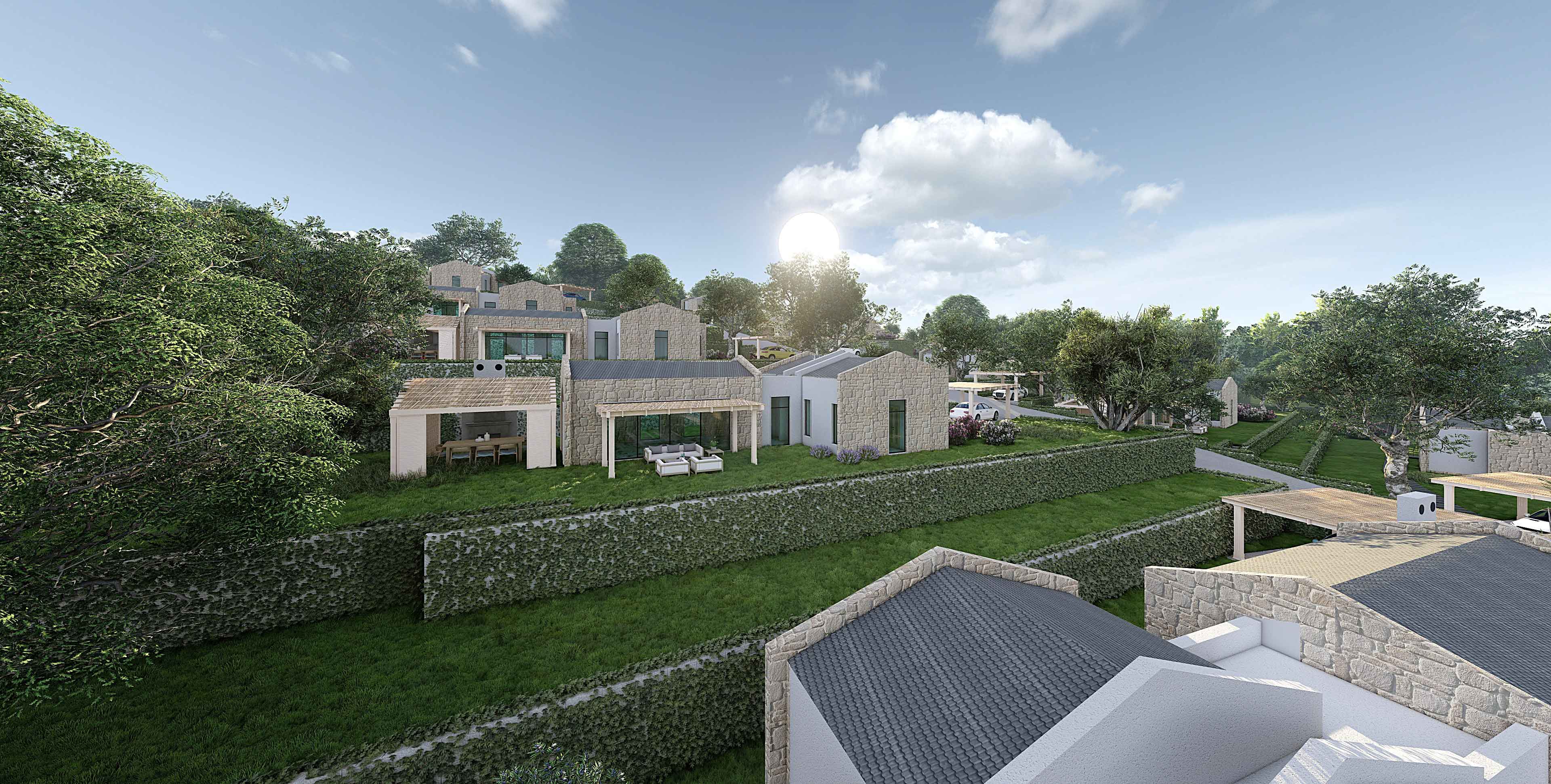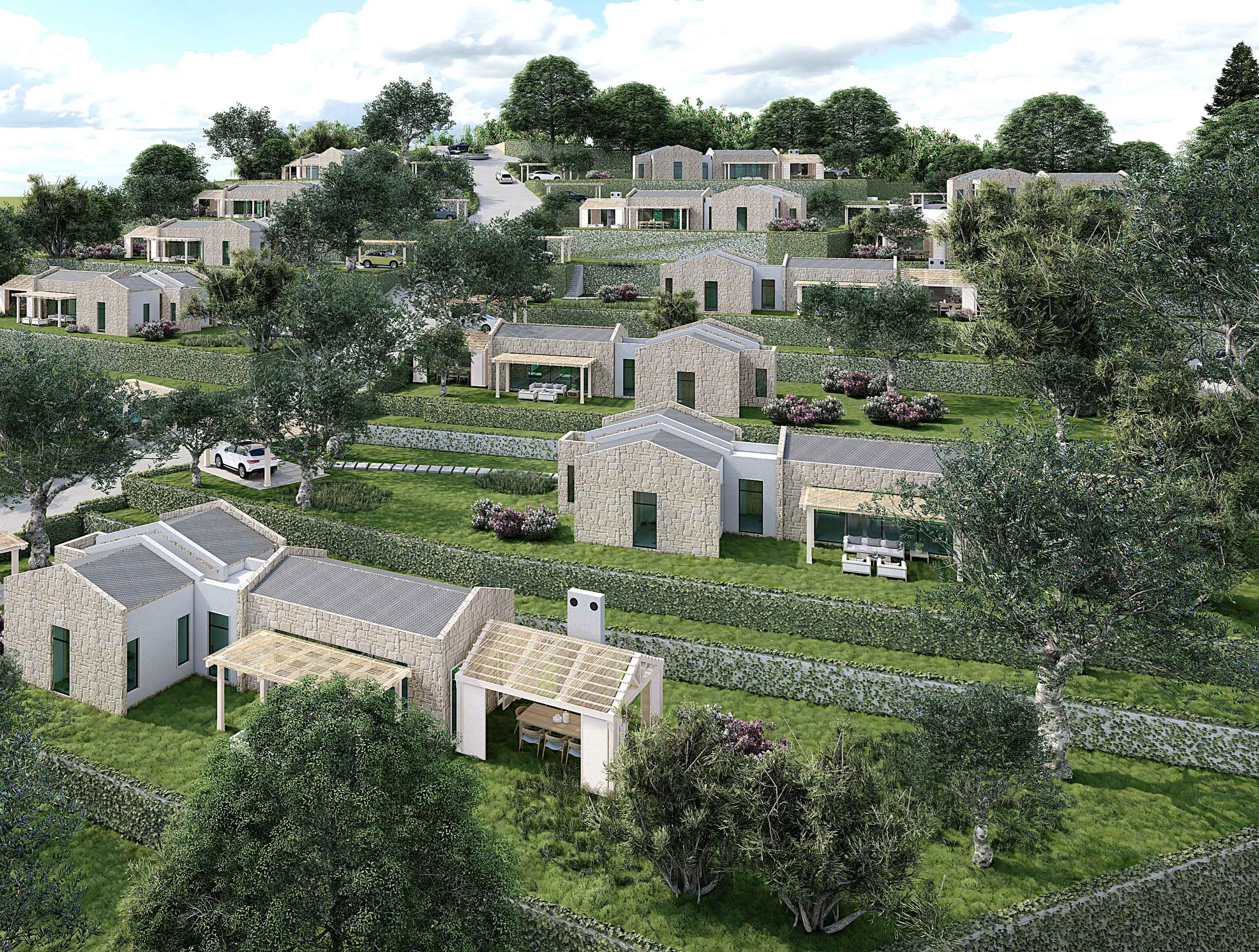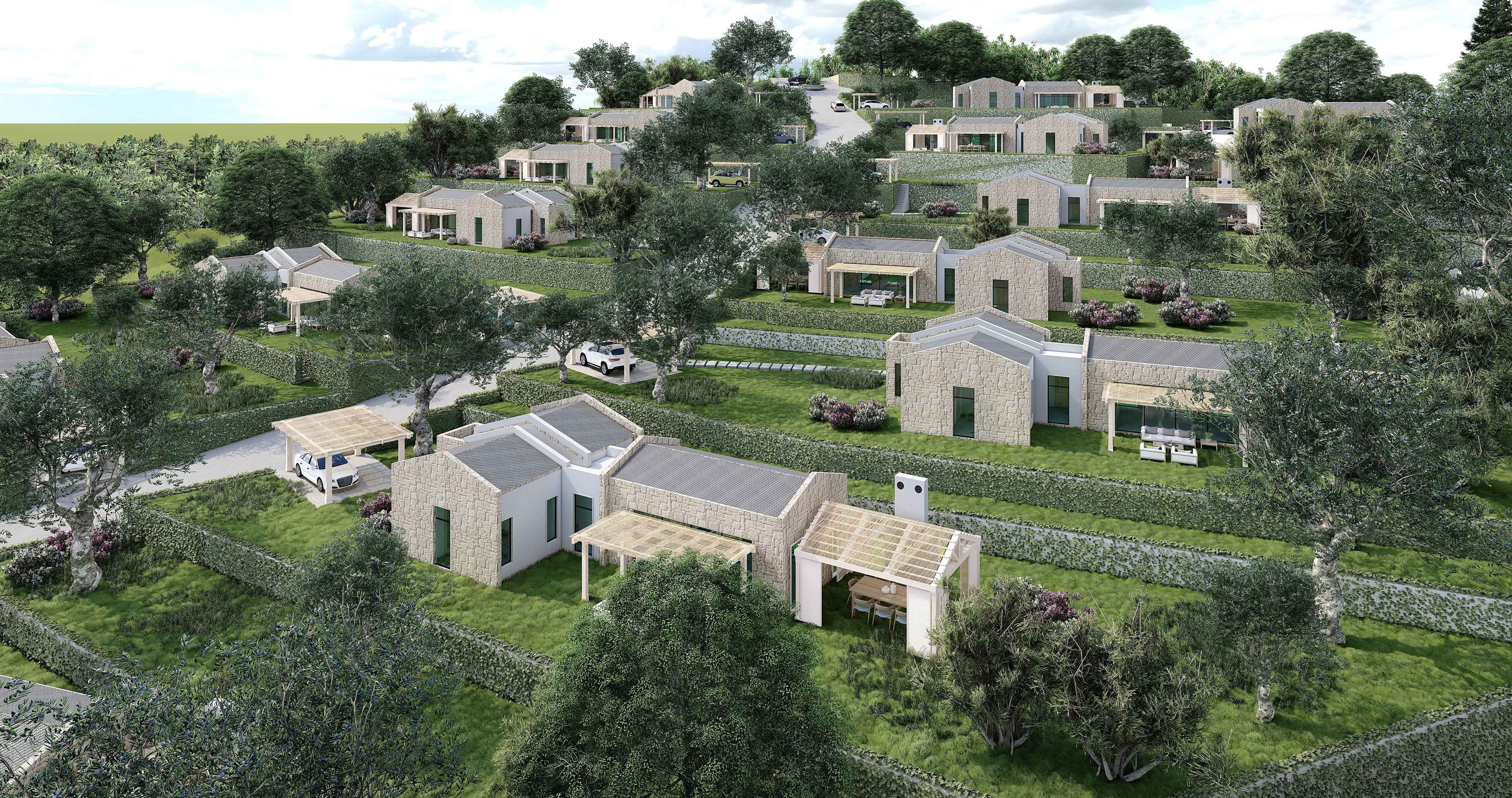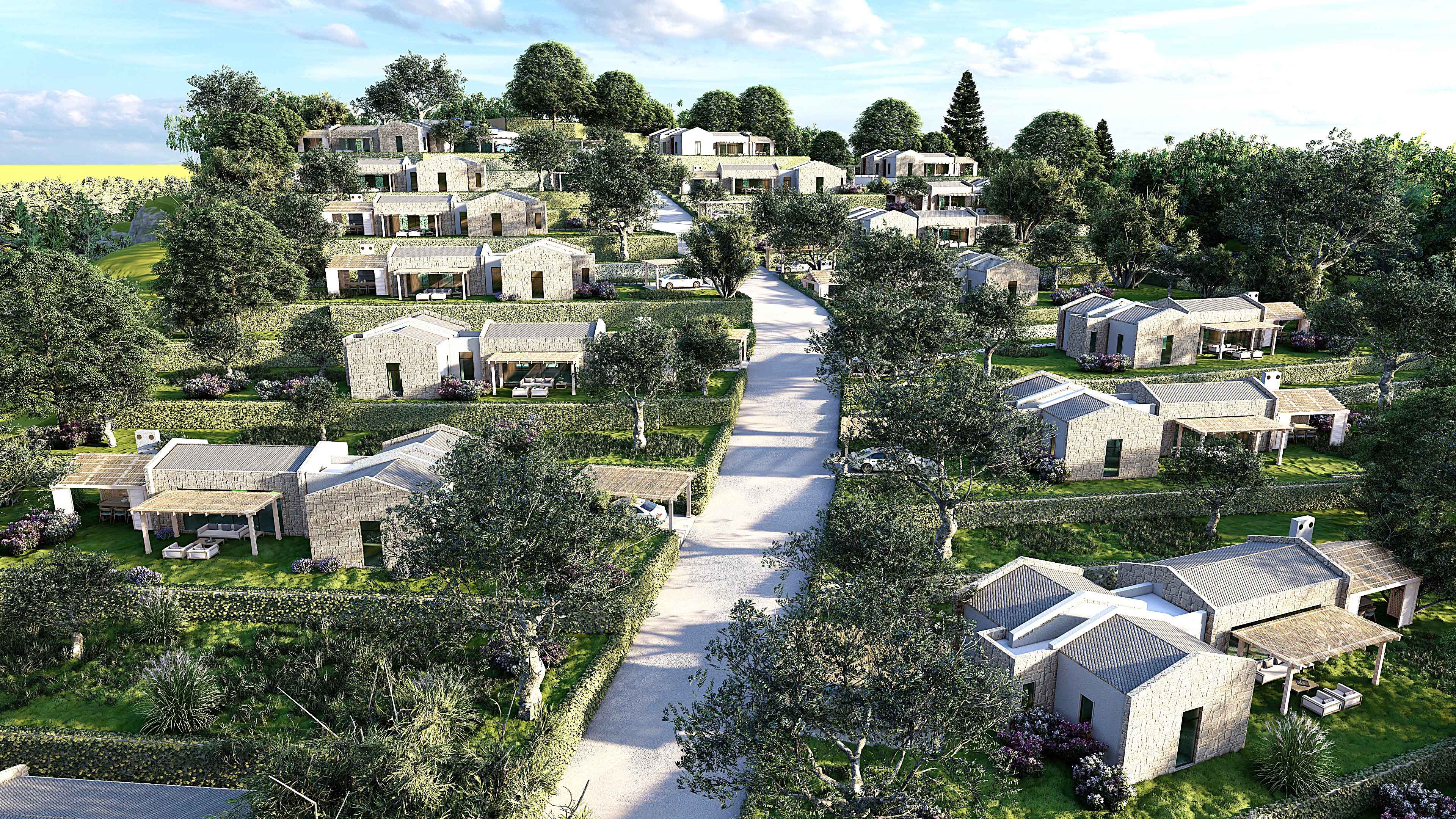 • Büyük bir yaşam alanının gereksinimi olan; yüzme havuzu, rekreasyon ̧çocuk oyun alanları, hobi bahçeleri, yürüyüş parkurları ve bireysel otopark olanaklarına sahip bir projedir.